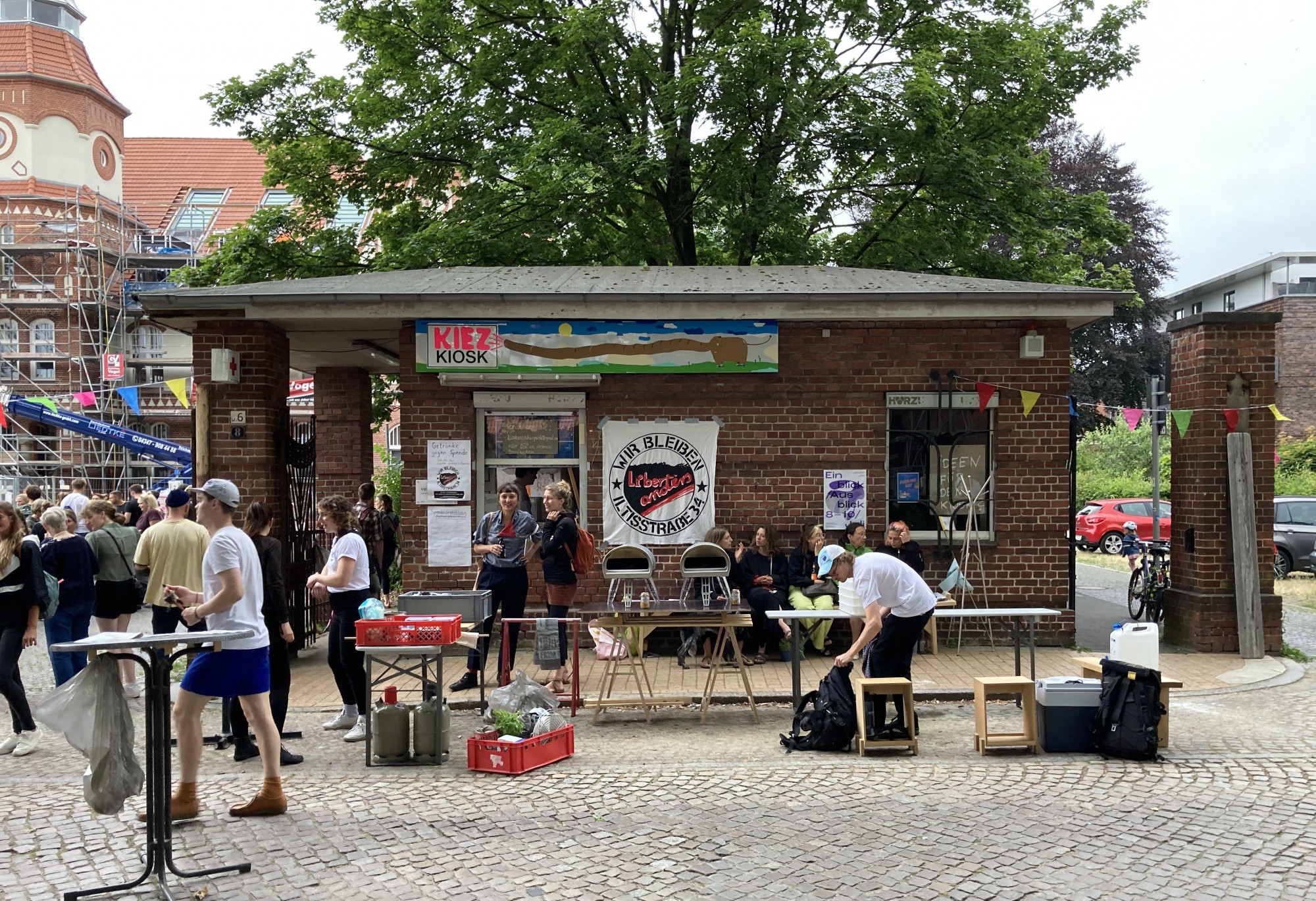 Der Kiez-KIOSK ist eine Bürger*inneninitiative die für eine Belebung und Vernetzung der Wik sorgen möchten. Da der Kiosk momentan noch nicht als Aufenthaltsort genutzt werden kann, finden unregelmäßig regelmäßig innerhalb des Kiosk Kunstausstellungen oder außerhalb Veranstaltungen statt. Vor Ort können sich Kinderspielzeuge und verschiedene Kinder Fahrzeuge der „Anscharflotte“ ausgeliehen werden. Für Neuigkeiten schaut doch mal gerne bei Instagram vorbei oder schreibt eine E-Mail.