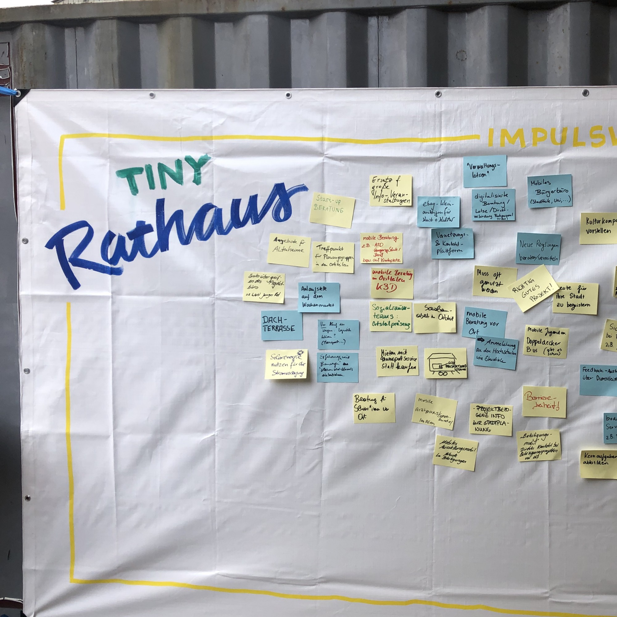Die Entwicklung des Tiny Rathaus wurde in einem Learning by Doing-Prozess erarbeitet, sodass auf Impulse, Anregungen und konkrete Herausforderungen der Stadtverwaltung eingegangen und diese in die Ausgestaltung des Projekts mit aufgenommen werden konnten.