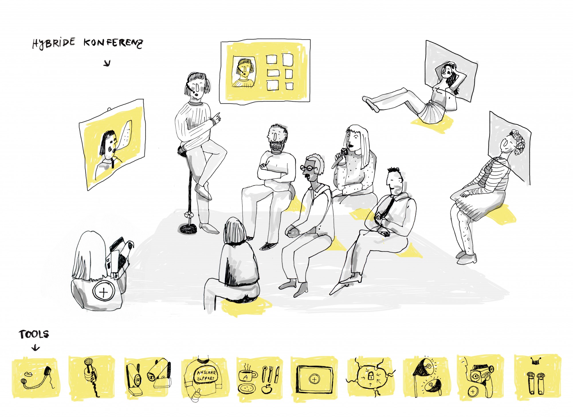 Neben den technischen Aspekten, ergab sich aus der Bestandsanalyse zu Beginn der Projektphase vor allem der Bedarf nach Werkzeugen für zukunftsfähige Veranstaltungsplanung und interaktivere Gestaltung von online Formaten - auch über die Pandemiesituation hinaus. In Vorbereitung der Sommerbühne 2021 und der online Veranstaltungen im Hybriden Konferenzraum und mobilen Studio, wurde mit dem Erlebnisdesign-Ansatz der Mensch und seine Bedürfnisse in den Mittelpunkt der Planung gerückt. So entstanden ein menschenzentriertes Hygienekonzept für die Sommerbühne, die Erlebnisdesign-Checkliste [download: ppp-erlebnisdesign-checkliste.pdf] für die Veranstaltungsplanung und interaktive online Tools, wie Spatial.chat, Mentimeter.com, Padlet.com, Garticphone.com, Wonder.me wurden erprobt.