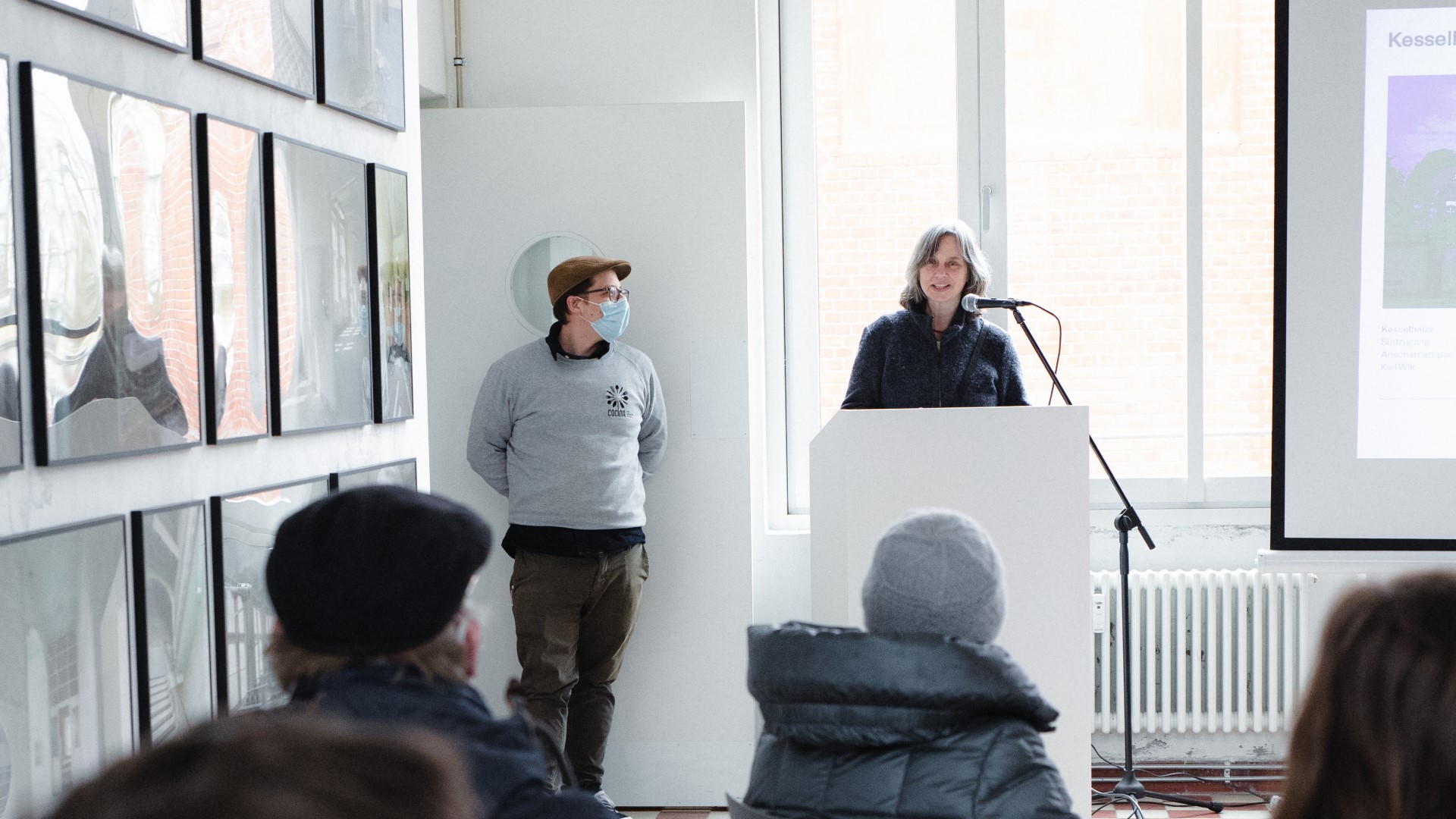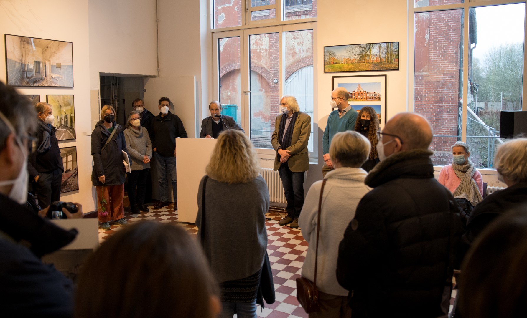 Zur Eröffnung der Vernissage sprachen Anke Müffelmann (Vorständin des Kunstverein Haus 8), Torsten Albig (Ministerpräsident Schleswig-Holstein a. D.) und Dr. Johannes Rosenplänter (Leitung Kieler Stadtarchiv).
