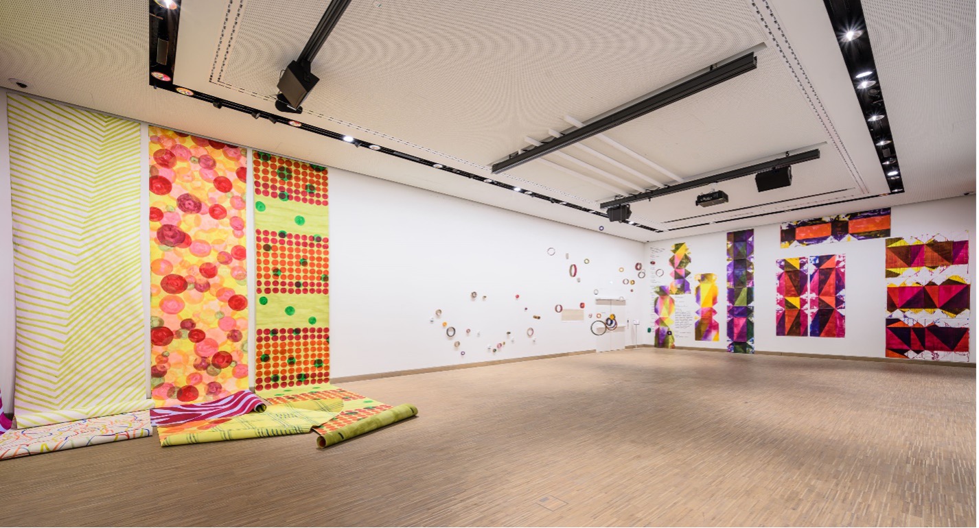 Ihr Werkstoff Papier ist leicht und beweglich, er lässt sich aufspannen, rollen, falten und erfordert eine direkte Arbeitsweise. Was auf dem Papier geschieht, bleibt sichtbar, es gibt wenig Möglichkeiten der Korrektur. Mit ihren Papierarbeiten untersuchen die Künstlerinnen auch die 3. Dimension und finden in der Ausstellung zu raumgreifenden Lösungen.