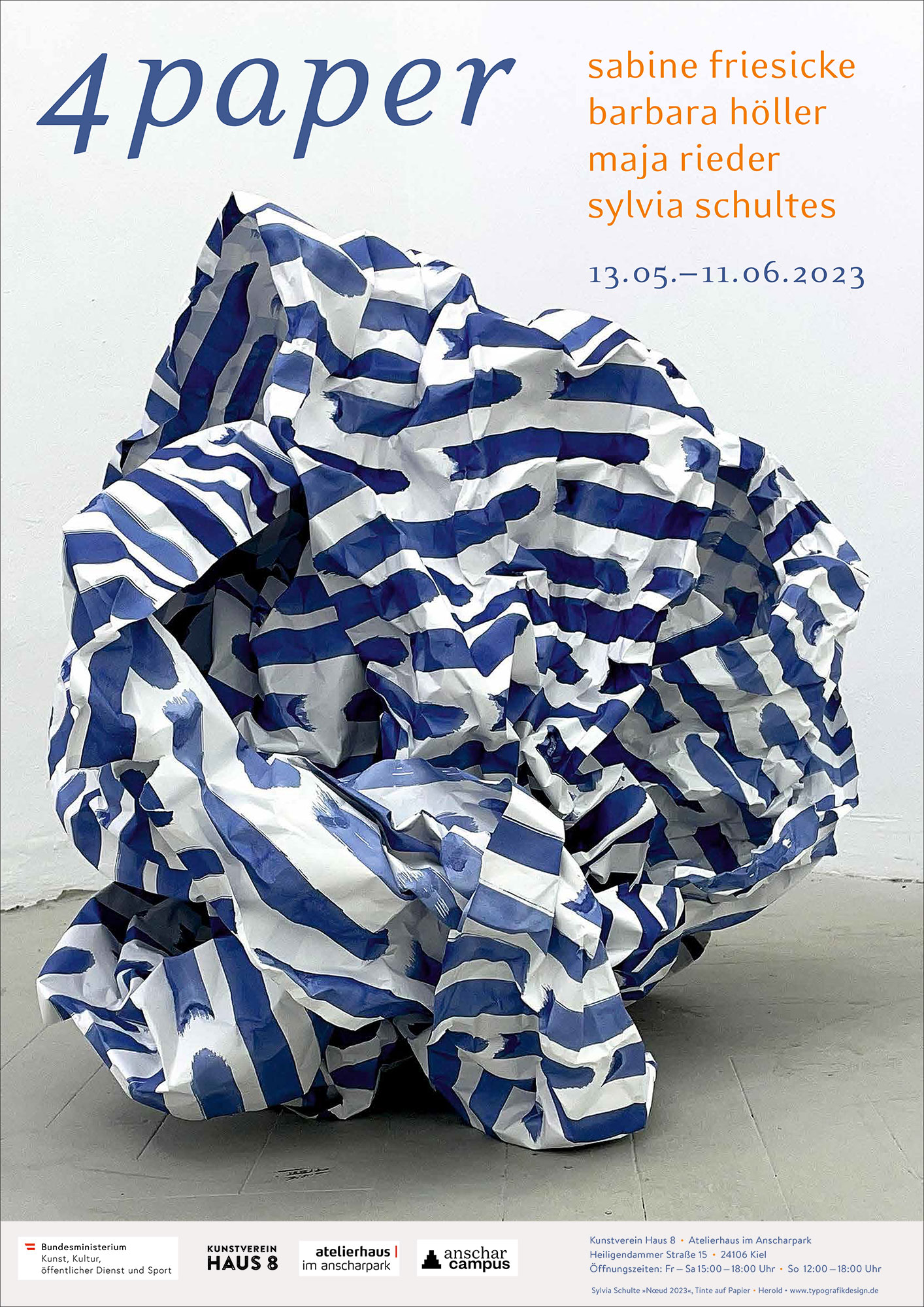 Sie haben sich über die ihre Auseinandersetzung mit dem Material Papier gefunden: Sabine Friesicke, New York / Ahrensburg, Barbara Höller, Wien, Maja Rieder, Basel und Sylvia Schultes, Hamburg. Alle vier Künstlerinnen arbeiten im nichtfigurativen Bereich. Im Kunstverein Kiel Haus 8 treffen die 4 Künstlerinnen zu einer zweiten gemeinsamen Ausstellung zusammen.