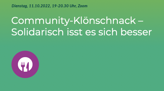 Der Community-Klönschnack ist offen für alle, die Interesse am Thema klimafreundliche und solidarische Ernährung haben. Lernt euch kennen, tauscht euch aus, und werdet aktiv für den Klimaschutz und die Ernährungswende. Wir freuen uns auf euch!