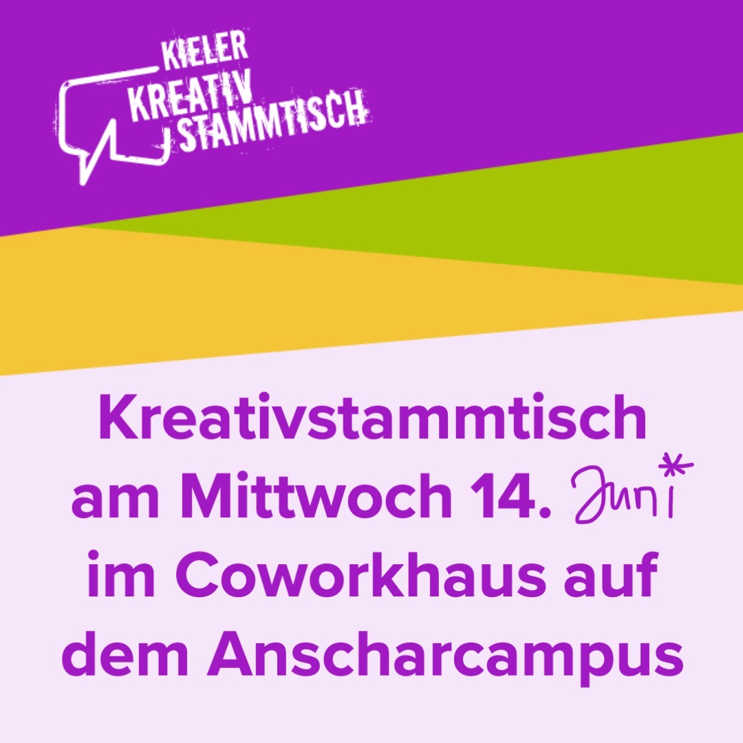 Zum nächsten Kreativstammtisch laden wir, am Mittwoch den 14. Juni ins Coworkhaus auf dem Anscharcampus, Weimarer Straße 6, 24106 Kiel. Ab 18.30 Uhr geht es los.