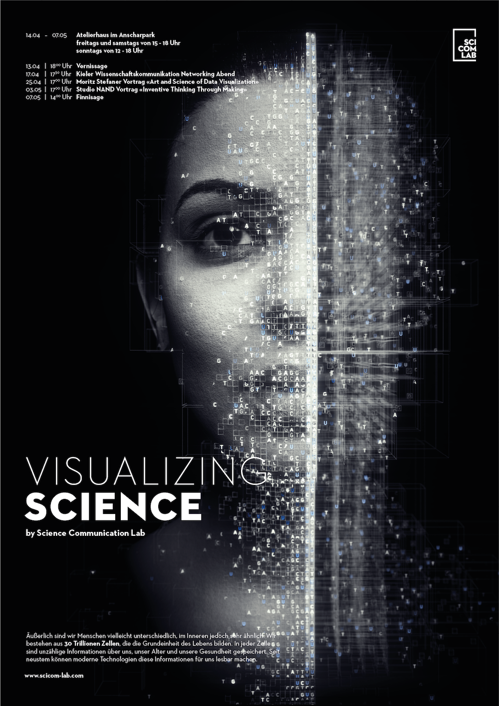Das Science Communication Lab eröffnet am Donnerstag, den 13. April eine Werkschau mit interaktiven Exponaten im Atelierhaus im Anscharpark in Kiel. Die Ausstellung des Designstudios für visuelle Wissenschaftskommunikation präsentiert erstmals eine umfassende Zusammenstellung vieler Werke aus den letzten 10 Jahren. Besucher*innen können sich auf faszinierende Einblicke in die Welt der Wissenschaft und Technologie freuen, präsentiert auf eine kreative und vielfältige Weise, zum Beispiel mittels interaktiver Wissenschaftsposter, Konzeptstudien und großformatiger Projektionen.