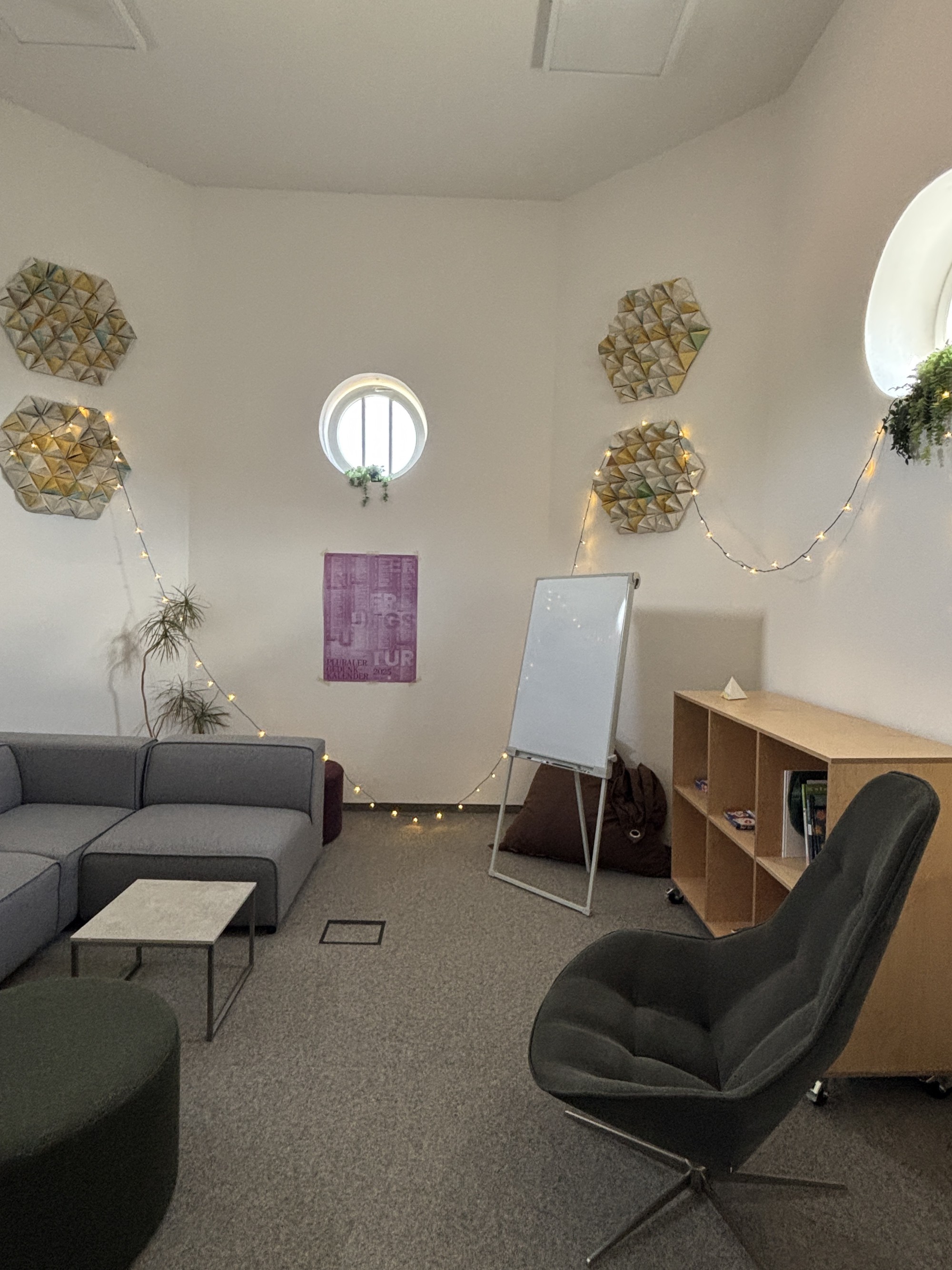 in Kombination mit dem offenen Dachgeschoss auch gut als Backstage- oder Rückzugsraum bei größeren Veranstaltungen geeignet.